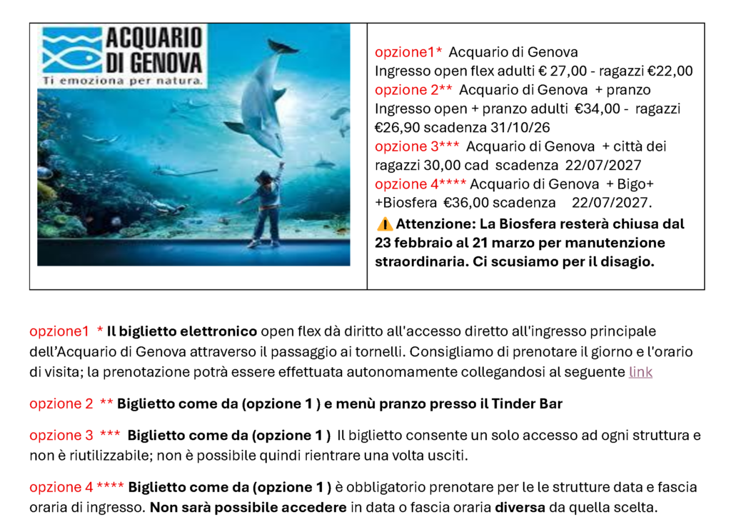 prenota una opzione per la visita all'acquario di Genova con cralitalia ![]()