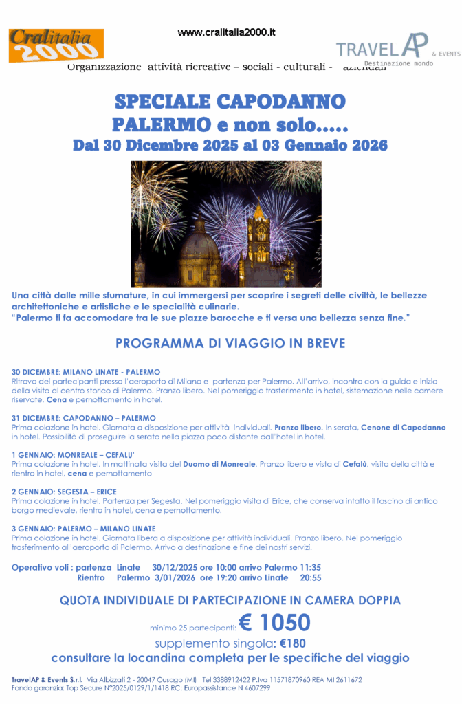 Prenota con Cralitalia nella sezione viaggi, sarai ricontattato per la conferma