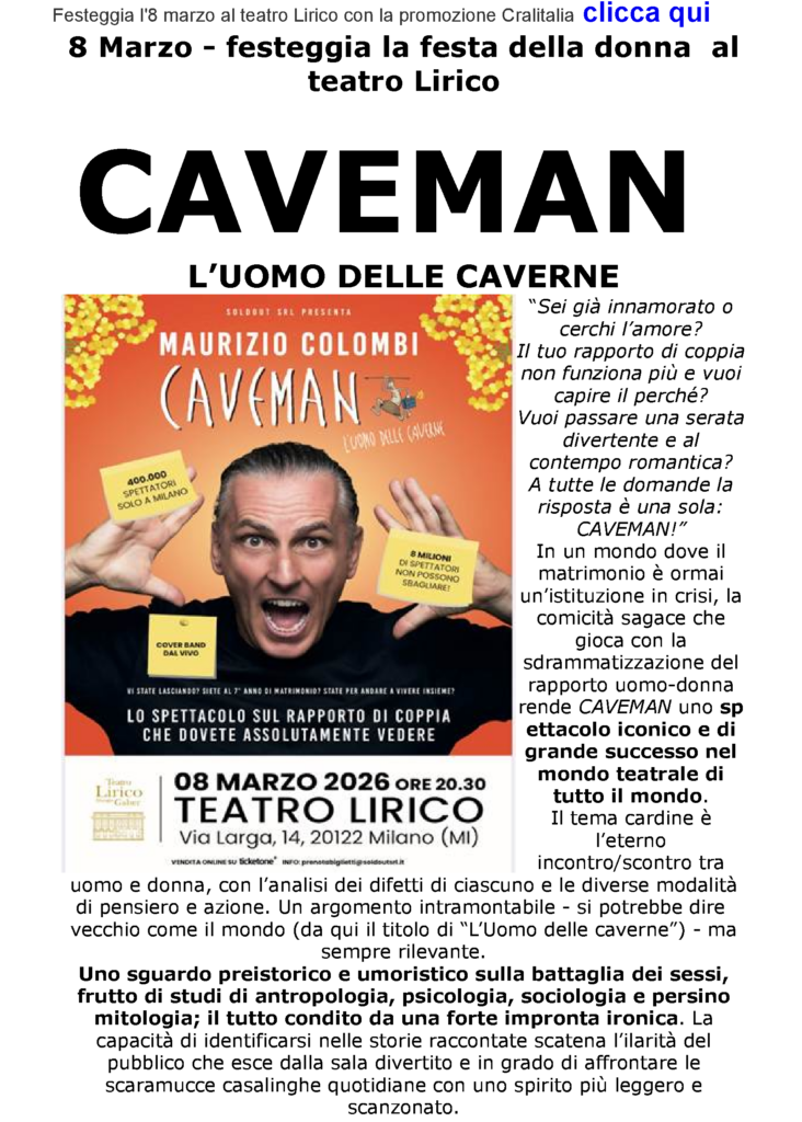 prenota con cralitalia al teatro Lirico la tusaserata dell'8 Marzo. ![]()